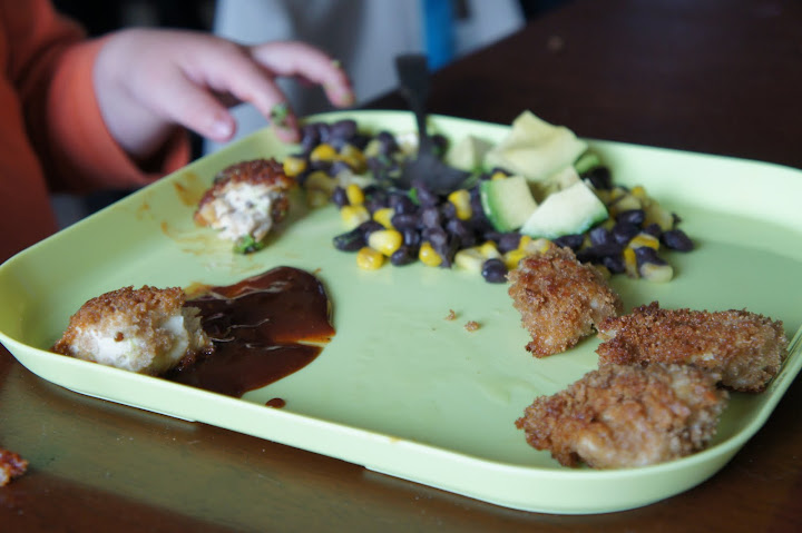 Chicken Nuggets with Corn, Black Bean and Avocado Salad